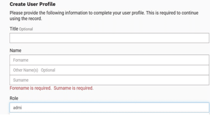 When accessing this for the first time for case with EPaCCS present, it will ask you to fill out a user profile form as seen below: