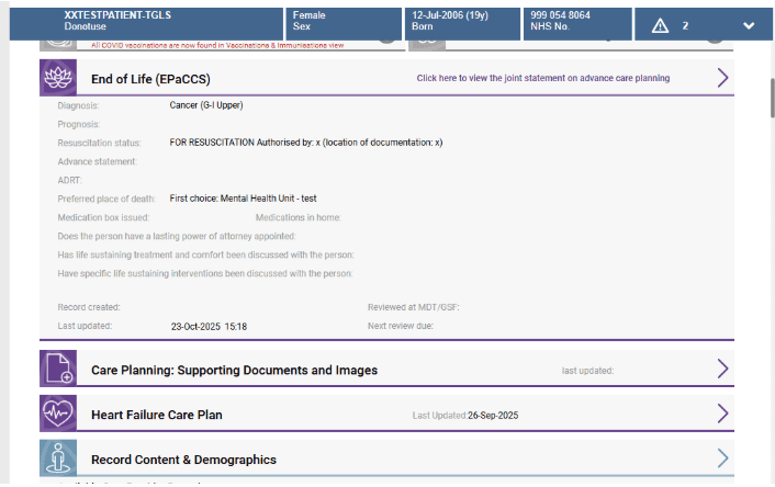 The Greater Manchester Care Record (GMCR) has been updated with EPaCCS functionality. This function will allow notes to be added from the surgery directly to the patients digital files with GMCR.