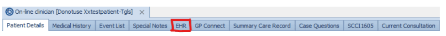 This function can be accessed from the EHR tab on Adastra when accessing a patient's case: